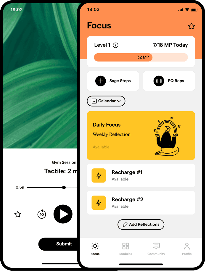 The PQ Program is an app-guided, 7-week program with interactive learning, coaching, and peer support, designed to rewire your brain for lasting positive change.